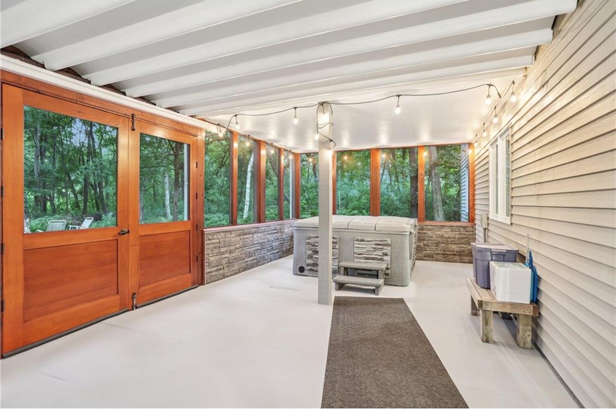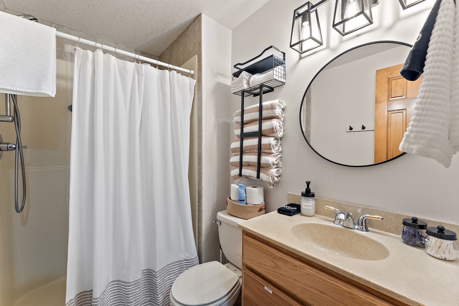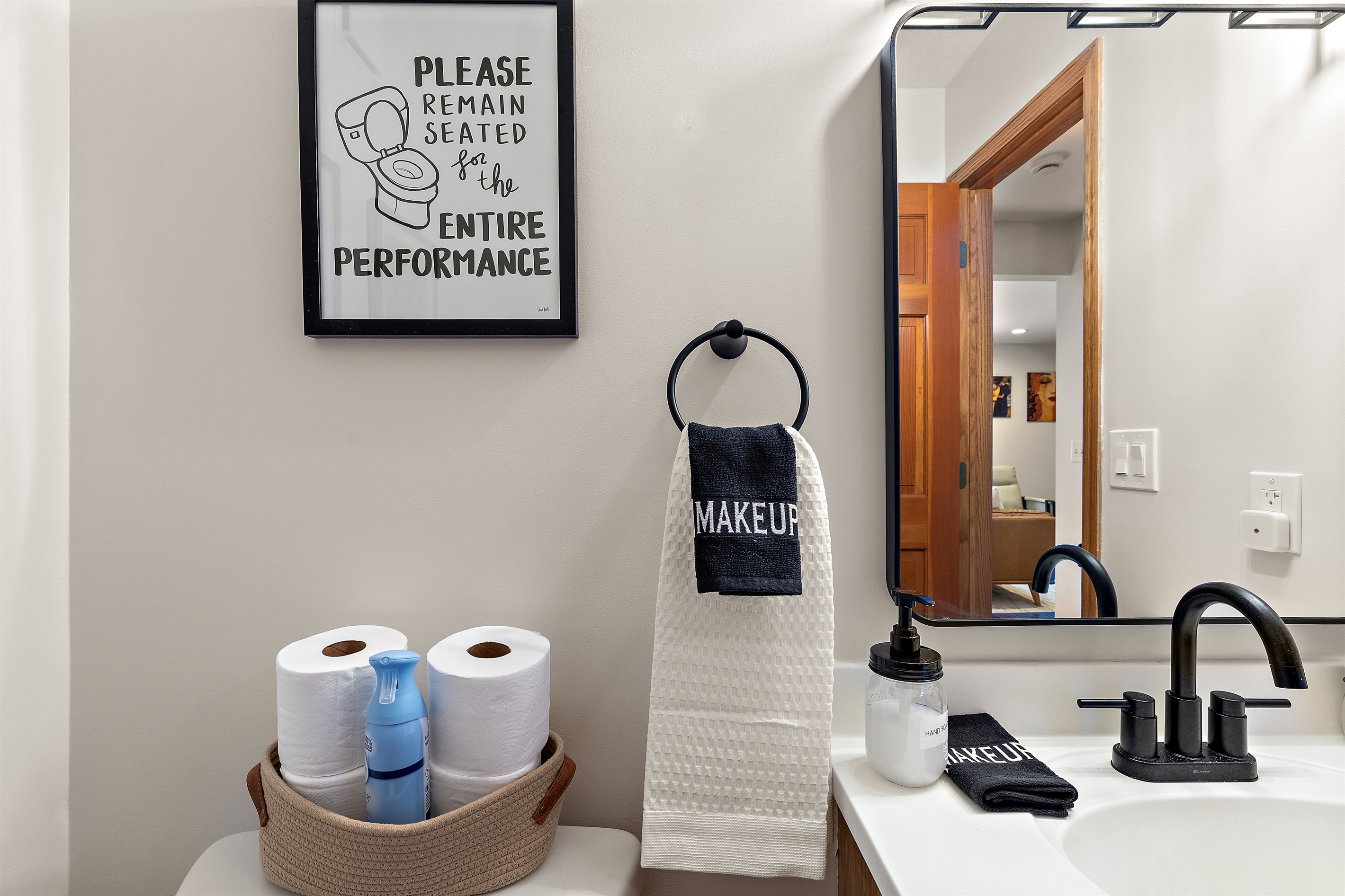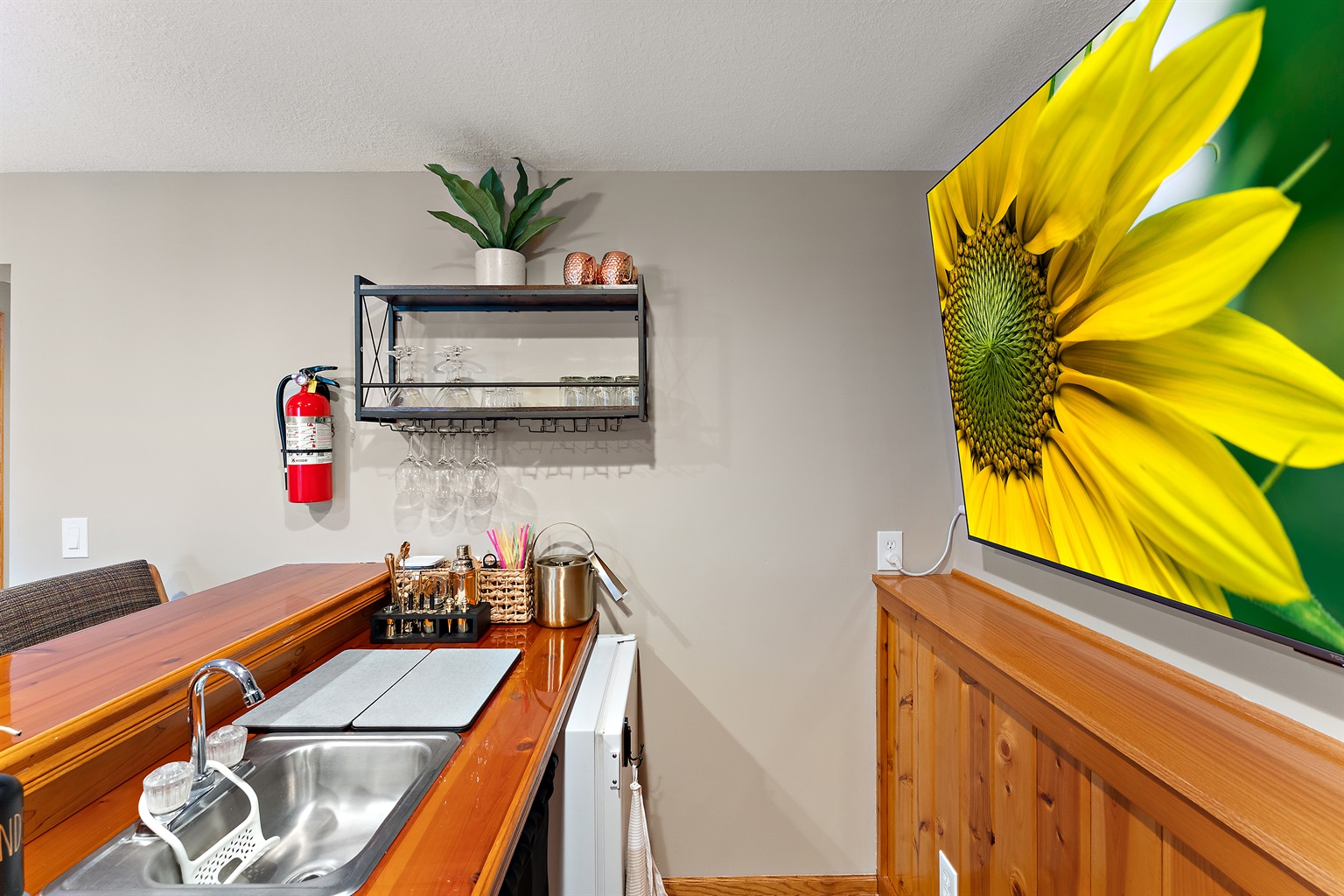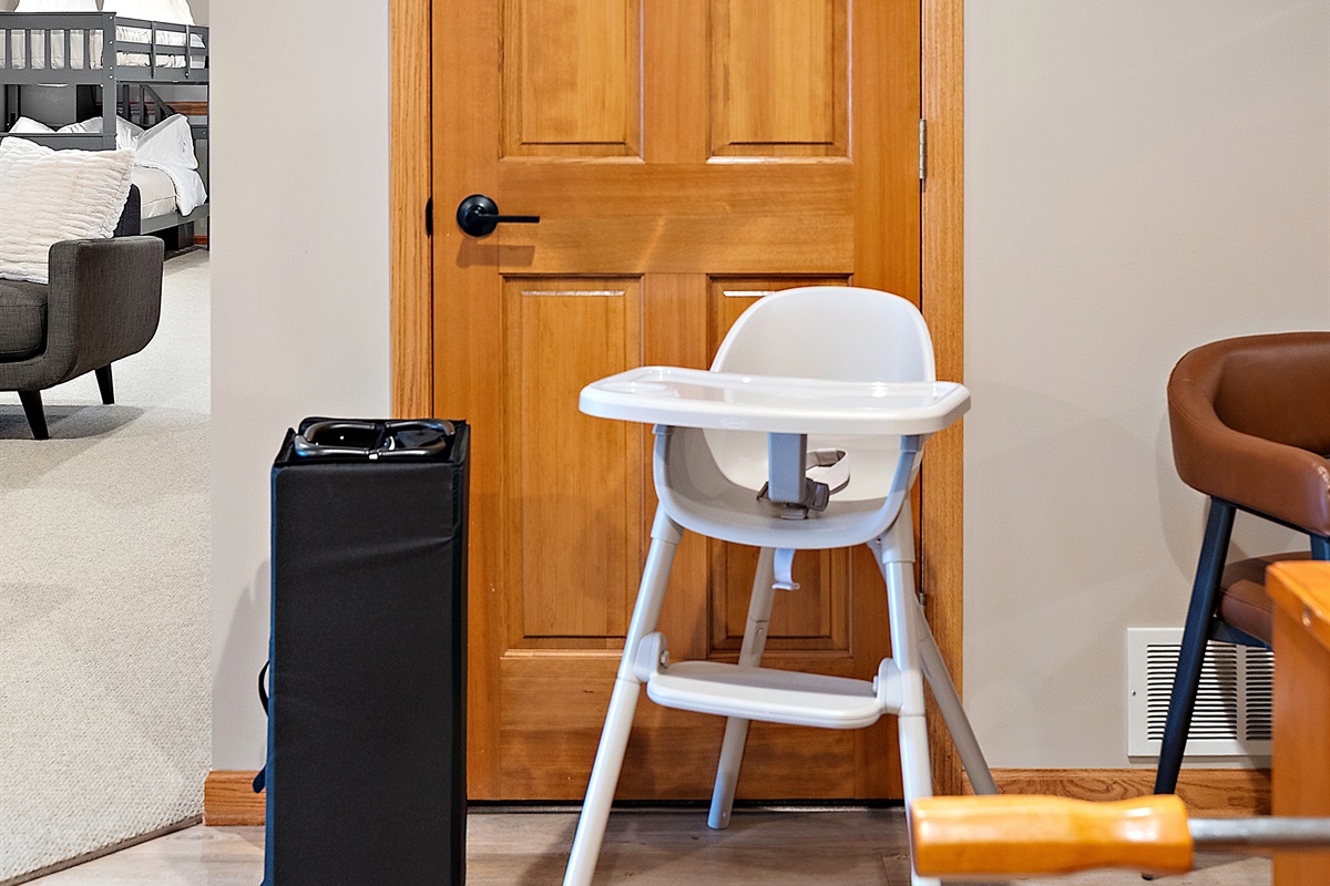 Sleeps up to 14 with room to spread out and relax. The entertainment basement is a highlight, featuring two 75″ TVs, arcade machine, foosball, sauna, and a private hot tub.